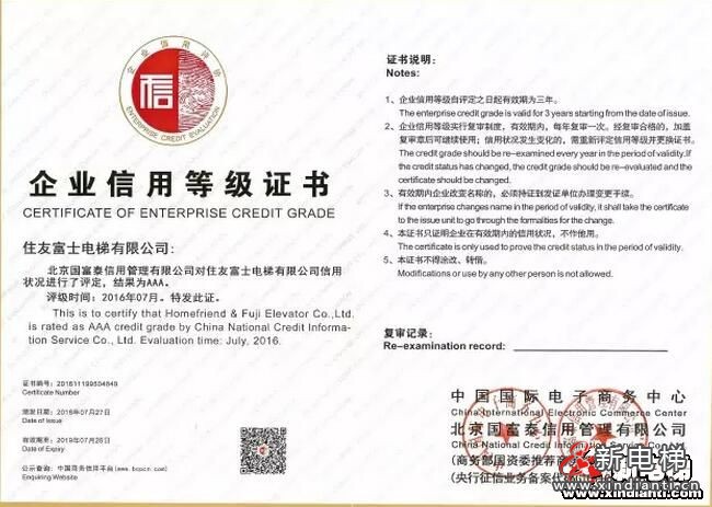 隨著公司實(shí)力地不斷增強(qiáng),企業(yè)信用不斷提升以及與各地區(qū)合作伙伴對(duì)住友富士電梯的大力支持,使住友富士電梯有限公司步入了最新的發(fā)展階段!祝賀住友富士電梯有限公司榮獲企業(yè)信用AAA登記證書,并取得牌匾。