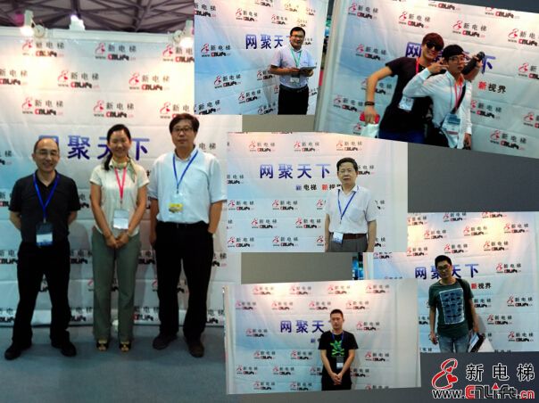 normal align=center>建筑設(shè)計、電梯界中、外嘉賓于新電梯網(wǎng)展臺前合影留念