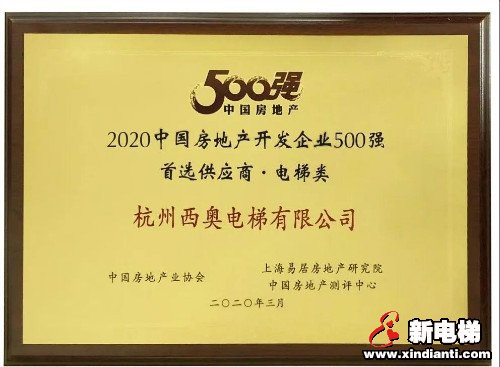 近日,以“重塑 · 遠(yuǎn)見(jiàn) · 啟程”為主題的2020年中國(guó)房地產(chǎn)500強(qiáng)測(cè)評(píng)成果發(fā)布會(huì)暨500強(qiáng)高峰論壇隆重召開(kāi)。西奧電梯憑借過(guò)硬的綜合實(shí)力以及良好的業(yè)界口碑,榮獲“中國(guó)房企500強(qiáng)首選供應(yīng)商”榮譽(yù)。