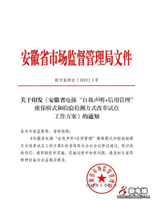 安徽省發(fā)布電梯“自我聲明+信用管理”維保模式和檢驗(yàn)檢測方式改革試點(diǎn)工作方案,方案指出,調(diào)整試點(diǎn)電梯檢驗(yàn)檢測周期新安裝電梯監(jiān)督檢驗(yàn)后6年 以內(nèi),每3年檢驗(yàn)1次,在不實(shí)施檢驗(yàn)的年份每年檢測1次;15年以內(nèi)的電梯,每2年檢驗(yàn)1次,試點(diǎn)開展按需維保的電梯使用單位及維保單位,具備條件 的電梯使用、維保單位檢測本單位所管理、維保的電梯,不得檢 測非本單位管理、維保的電梯。