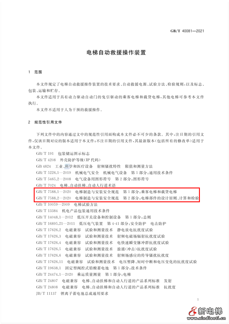 電梯自動救援裝置符合GB/T 7588.1-2020的有關(guān)規(guī)定,可減小停梯困人造成的不利影響,防止發(fā)生與電梯的正常使用、維護或緊急操作相關(guān)事故的危險。(GB/T 40081-2021解讀版見下文)