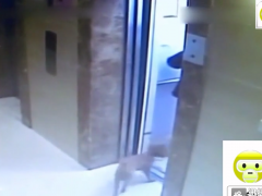 老太牽寵物狗乘電梯 小狗沒能沖進(jìn)電梯被吊死